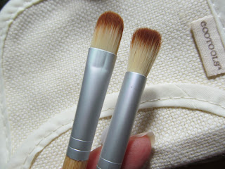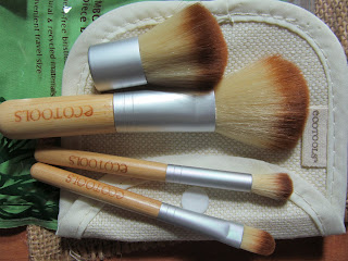 Після набору від МАС 32 шт в рожевому чохлі, я зрозуміла що насправді мені потрібні лише кілька кистей, але якісних, тому чотири лишила собі, інші так і лежать запаковані. І купила нашумілі в просторах інету кисті EcoTools в наборі з 5 шт.