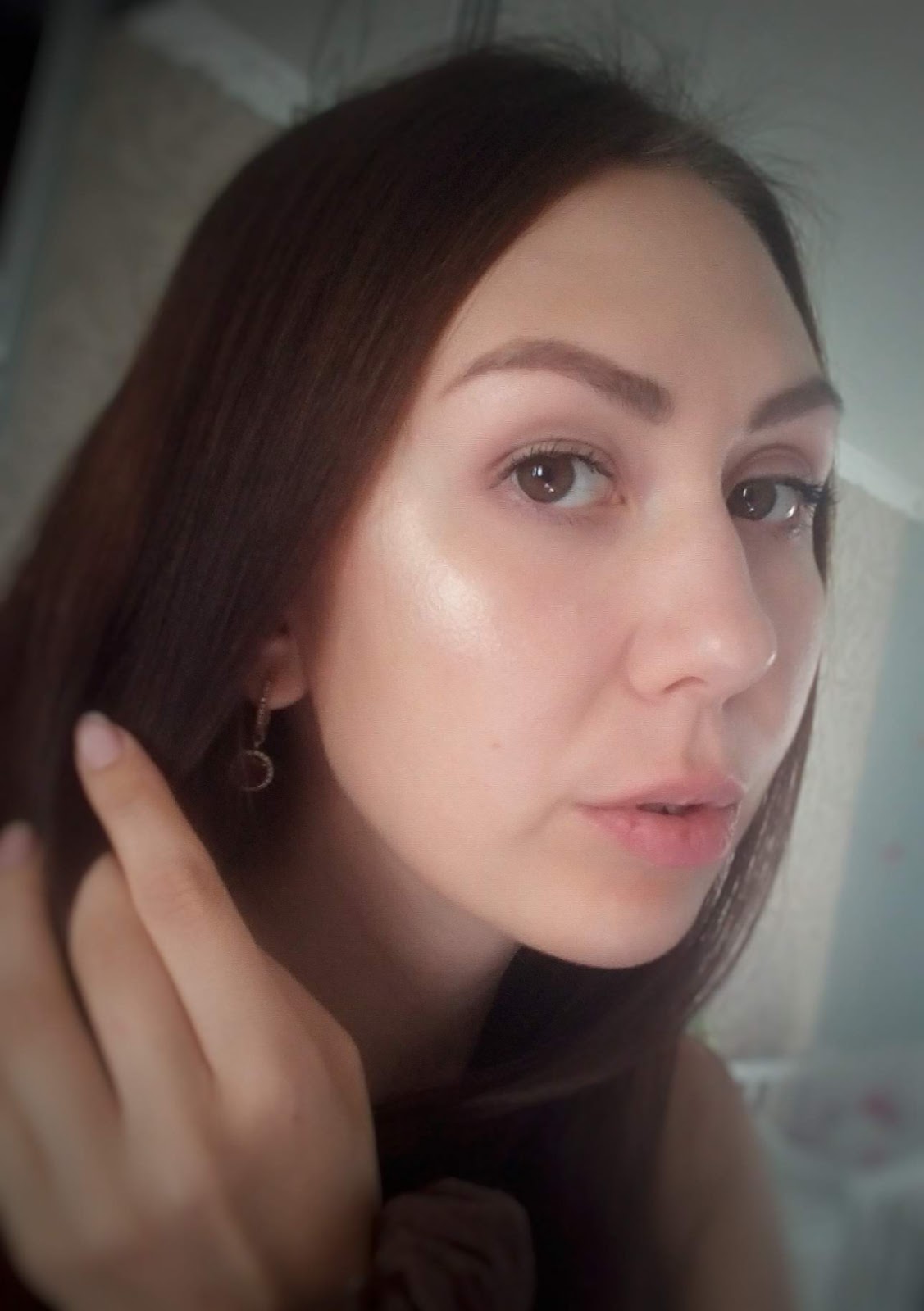 На ощупь хайлайтер кажется немного суховатым, но на самом деле, при растушевке спонжем, он хорошо расходится по коже и тушуется в мелкую пыль. Я не скажу, что здесь прям крупные сияющие частички, на моей памяти встречались и побольше. И в жизни на лице они не так заметны.